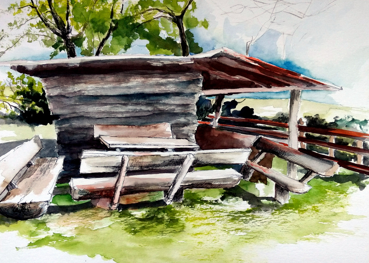Nun liegt mein erstes Jahr auf dem Land hinter mir und ich nutzte meine kursfreie Zeit, um im Sommer gesammelte Motive nun in Farbe umzusetzen.
